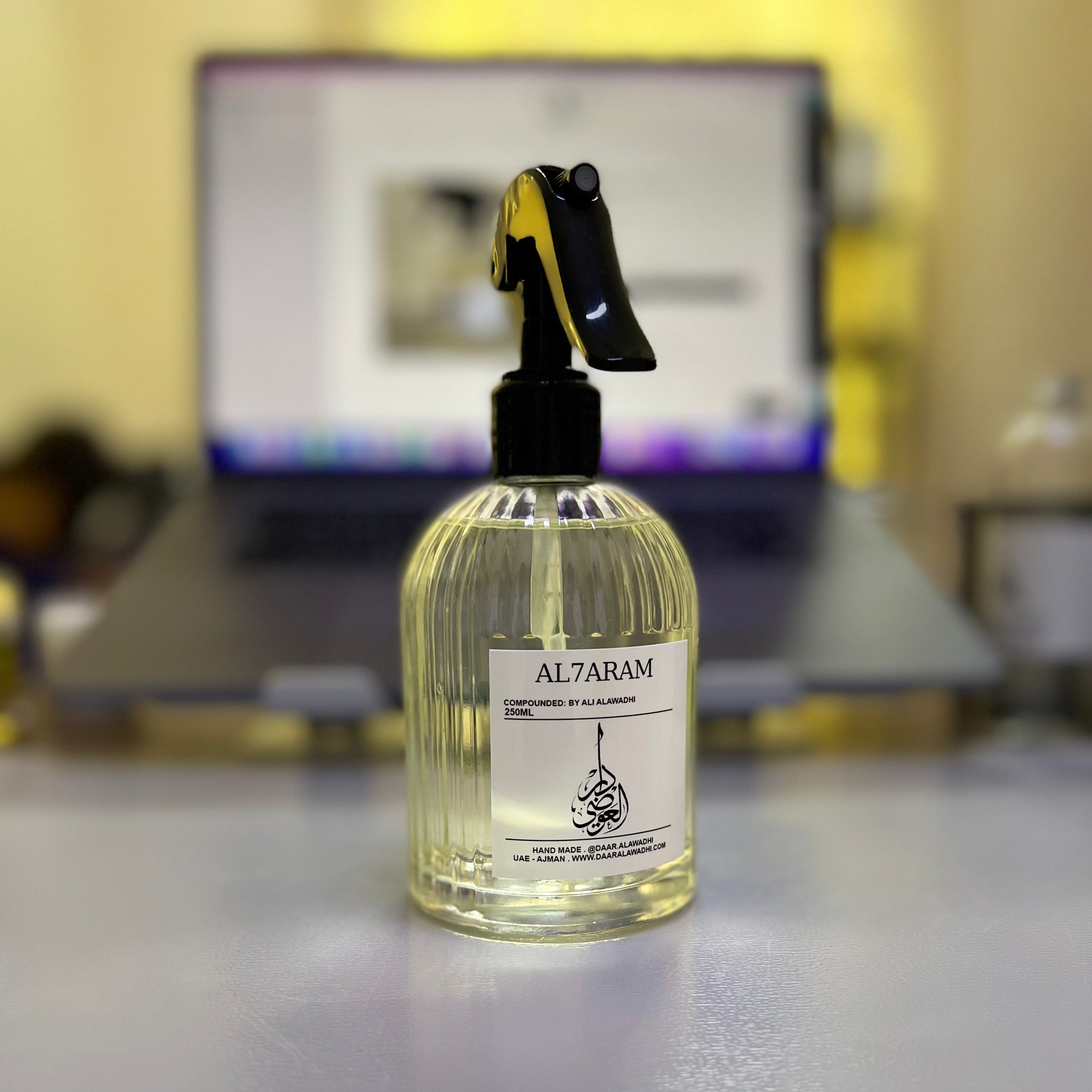 معطر جميل للمفارش والستائر عطر مستوحى من رائحة سجاد الحرم مزيج من الورد والصندل مع لمسه بسيطة من المسك والعود