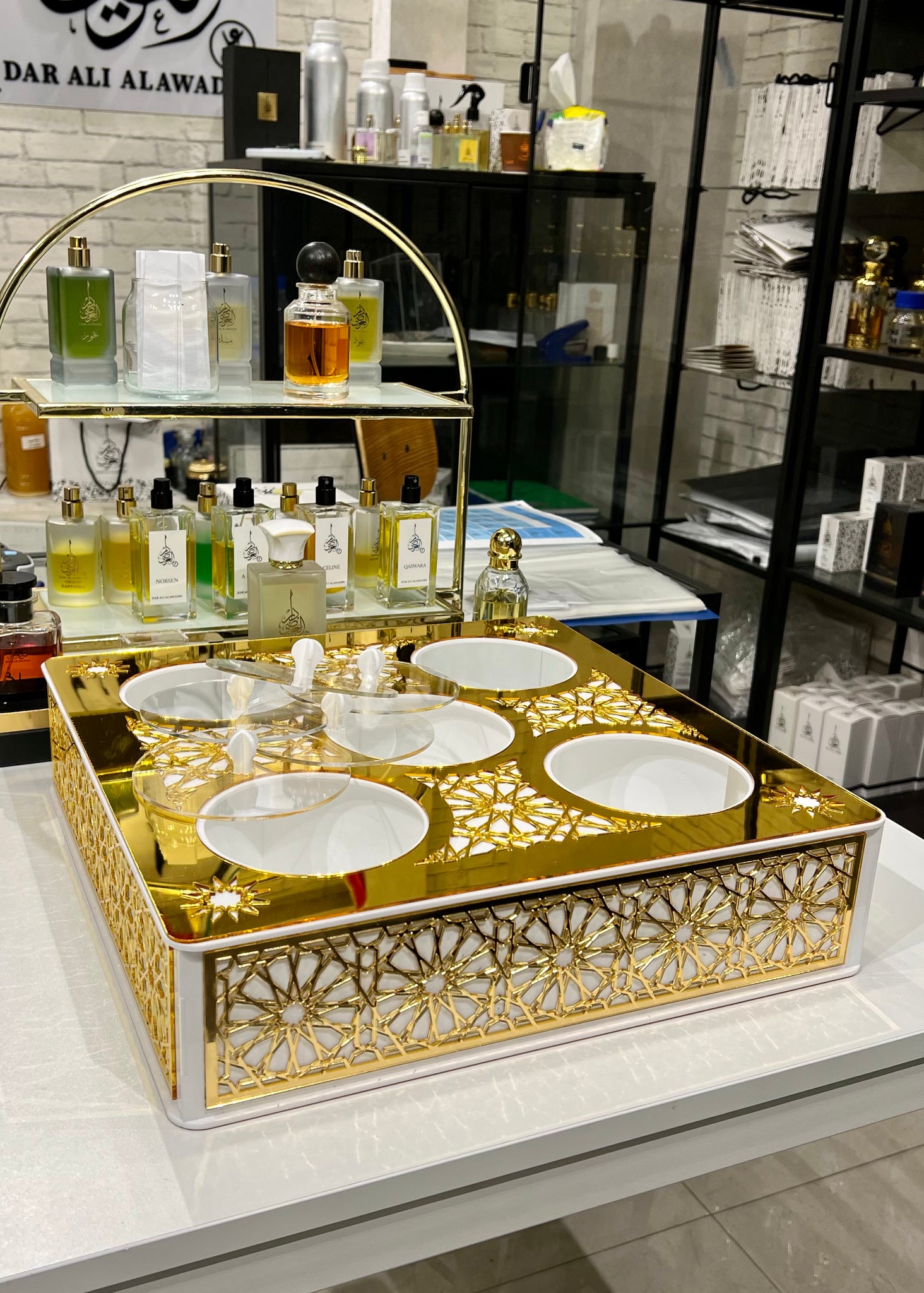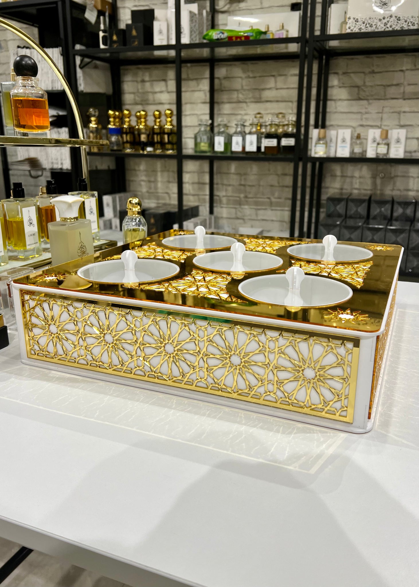 صينية تقديم المكسرات او التسالي للاعياد والمناسبات، ممكن تكون باللون الابيض او الاسود، ويمكن كتابة اي مناسبة